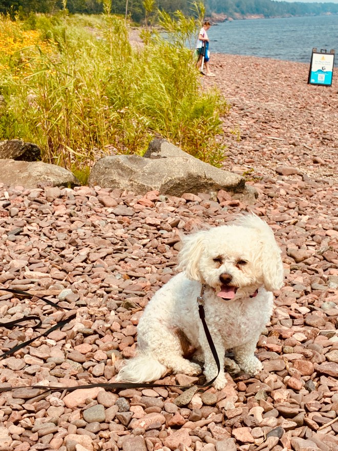 Emma on the big rock… thinking.