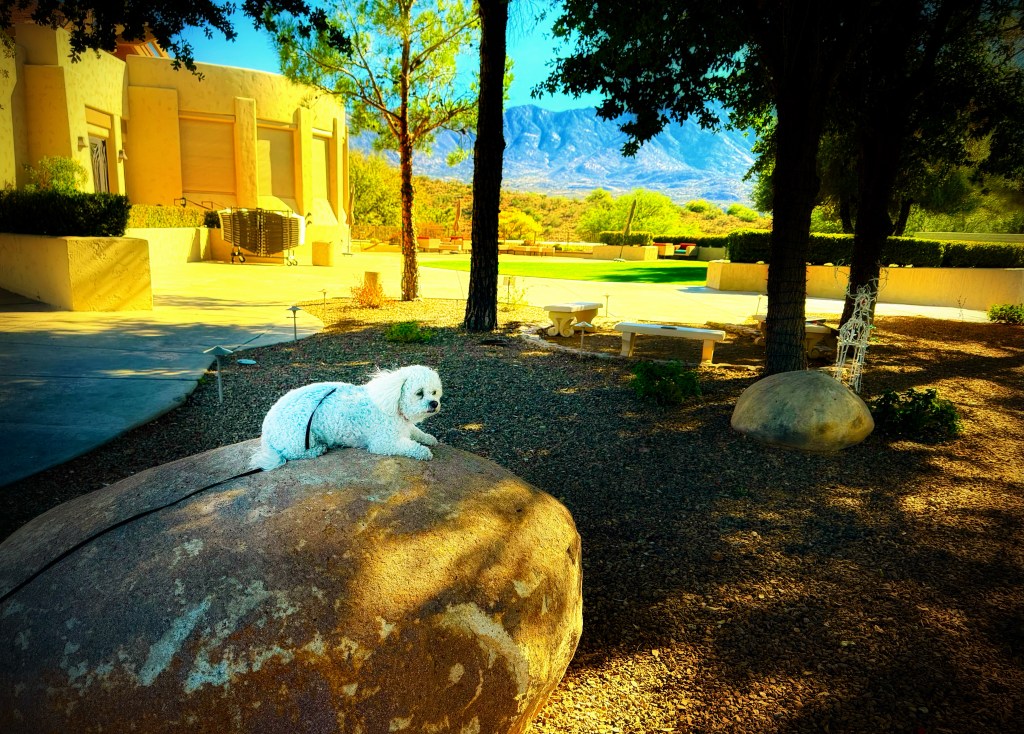 Over the holidays, I also spent some time sitting on a big rock near our community center, just watching the world go by. People were walking, golf carts were humming along, and the desert looked calm in that quiet way it gets when things slow down for a moment. I like sitting on rocks. They’re solid. They don’t rush you. They’re good places to think.